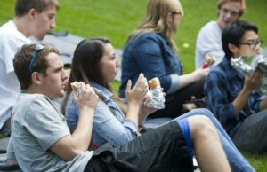 This is a tough one, no doubt, for any college student. You probably aren’t grocery shopping for the dorm, and its definitely a huge change from when living at home and having meals and your food choices prepared for you. The best advice I can give here is to eat the healthy dorm food and try to avoid the unnecessary greasy stuff. You will definitely be eating out a lot, so lean towards the wraps and salads over the burgers and pizza. There is almost no way to eat uber-healthy or organic if you live on campus your freshman year, but you can make efforts to minimize the consumption of empty calories.